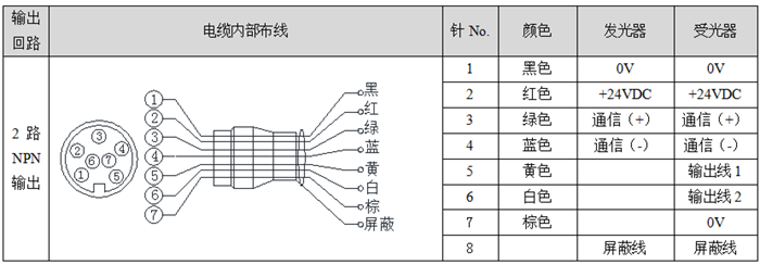 输入输出状态: 通光时,OSSD1、OSSD2控制输出默认为高电平,最大驱动电流≤200mA;
